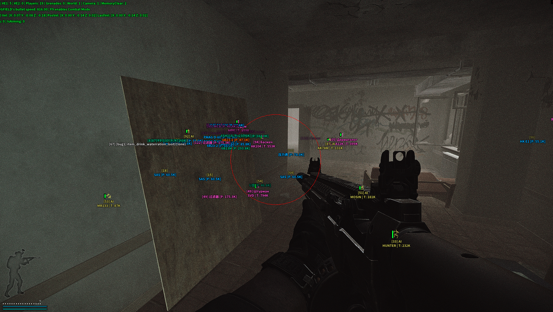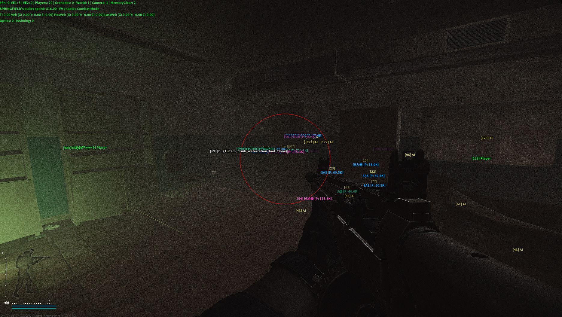- 透視、追踪、穿墙、Boos/Ai区分、瞬击、无限体力、无视负重、加速、容器名称显示、自定义功能表等